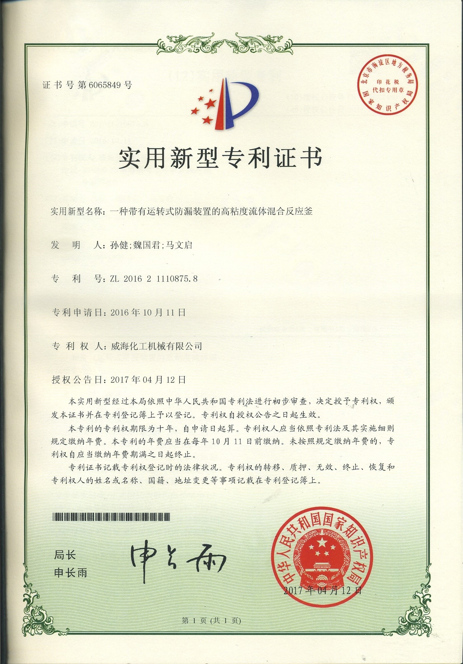 公司建有磁力驅(qū)動(dòng)測(cè)試試驗(yàn)室、攪拌模擬試驗(yàn)室、反應(yīng)釜流體混合攪拌重點(diǎn)實(shí)驗(yàn)室等,科研力量雄厚。截至2024年,公司共承擔(dān)近280項(xiàng)自主/合作開發(fā)任務(wù),先后承擔(dān)省級(jí)新產(chǎn)品開發(fā)任務(wù)25項(xiàng),其中23項(xiàng)產(chǎn)品已達(dá)到國內(nèi)水平。獲得各類省、市級(jí)技術(shù)創(chuàng)新獎(jiǎng)30余項(xiàng);參與起草、修訂標(biāo)準(zhǔn)共8項(xiàng),GB/T30098-2013實(shí)驗(yàn)室用磁力驅(qū)動(dòng)反應(yīng)釜標(biāo)準(zhǔn)、HG/T3648-2011磁力驅(qū)動(dòng)反應(yīng)釜標(biāo)準(zhǔn)、GB/T29254-2012實(shí)驗(yàn)室反應(yīng)釜用控制器標(biāo)準(zhǔn)、NB/T47002.1~47002.4-2019壓力容器用復(fù)合板;已獲得授權(quán)專利95項(xiàng),其中發(fā)明專利19項(xiàng),實(shí)用新型專利69項(xiàng),外觀專利7項(xiàng);擁有專有技術(shù)和核心技術(shù)40余項(xiàng)。
